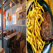 "Dejeuner tres consistent. La cuisine ne lesigne pas sur la quantite des frites. Ambiance retro anarchiste. J'ai pris une entrecote Argentine, tres bon. Belle piece de viande. Une autre fois, j'ai pris un foie de boeuf avec saudmce de fruits rouges. Raffine. Gardez bien votre shirt, pas de boisson gratuite pour les filles. C'est une blague sur leur panneau."